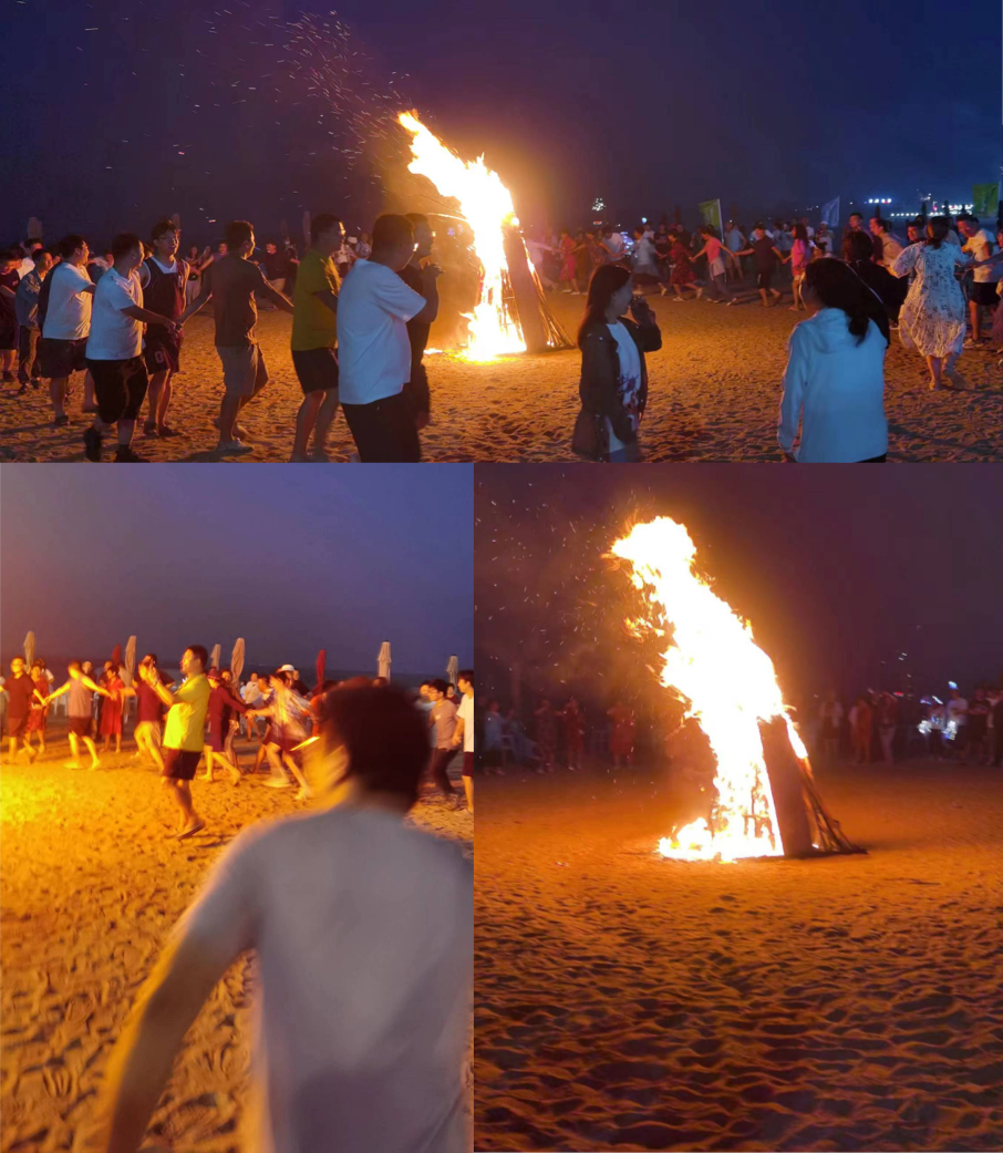 天渐渐黑了,篝火晚会即将开始。熊熊燃烧的烈火,象征着我们公司会越来越旺。大家围绕着篝火跳起舞,唱起歌,欢快的笑声回荡在空气中。