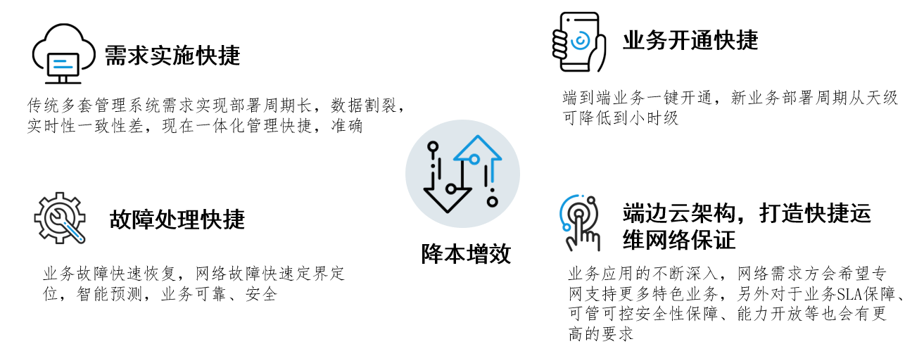 业务运维保障能力需求提升跨域跨厂家网络告警、性能多维映射能力,针对业务端到端呈现,实现业务全景告警、性能不同维度指标投影,提升业务SLA级别。
